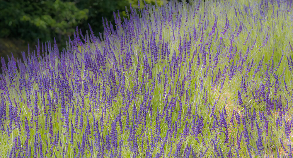 Presently we have about 2,850²(0.7 acre) and 3 varieties of lavernder flowering on our slope.