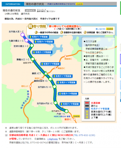 Kyoto Jukan Express way is open but with snow tire (tire chain) regulation.